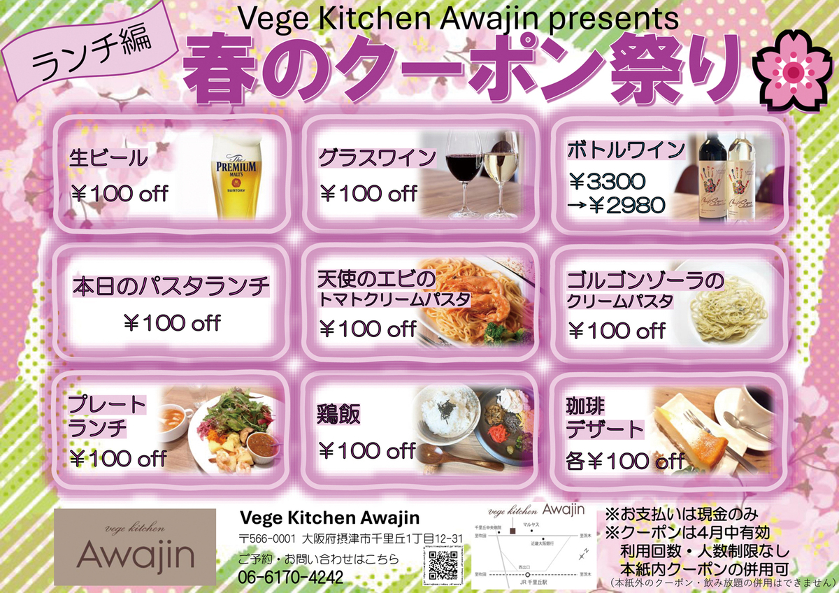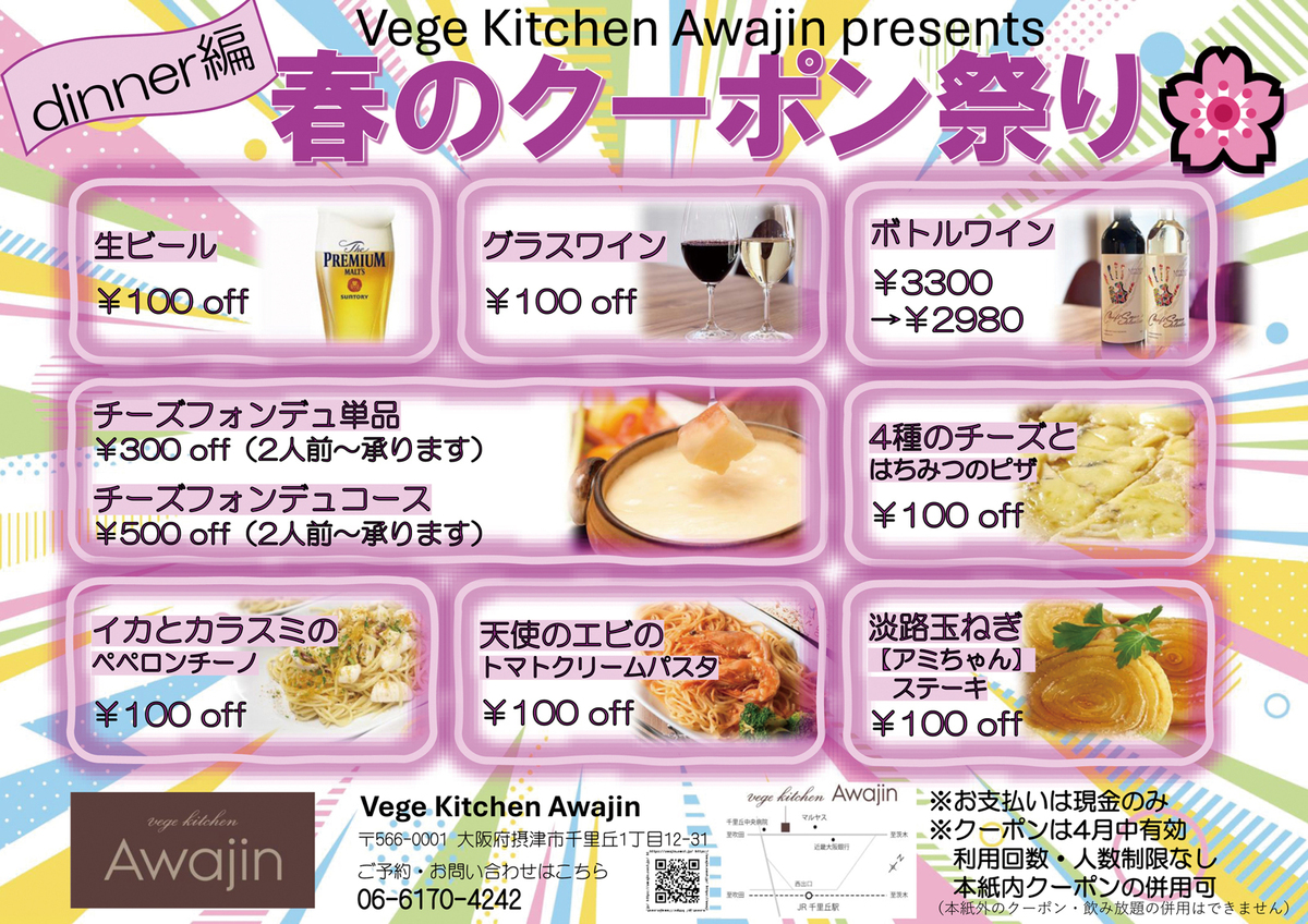 ランチ編・ディナー編と表裏でクーポンを発行しております。